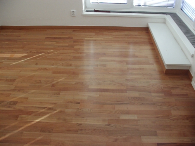 Pokládka kvalitní a ověřené dřevěné plovoucí podlahy Befag v dekoru Třešeň v Praze 8 - Dolní Chabry.